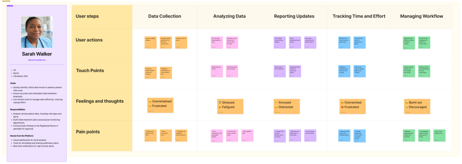 This process allowed us to identify key inefficiencies and pain points that affected healthcare professional’s ability to manage patient care effectively: