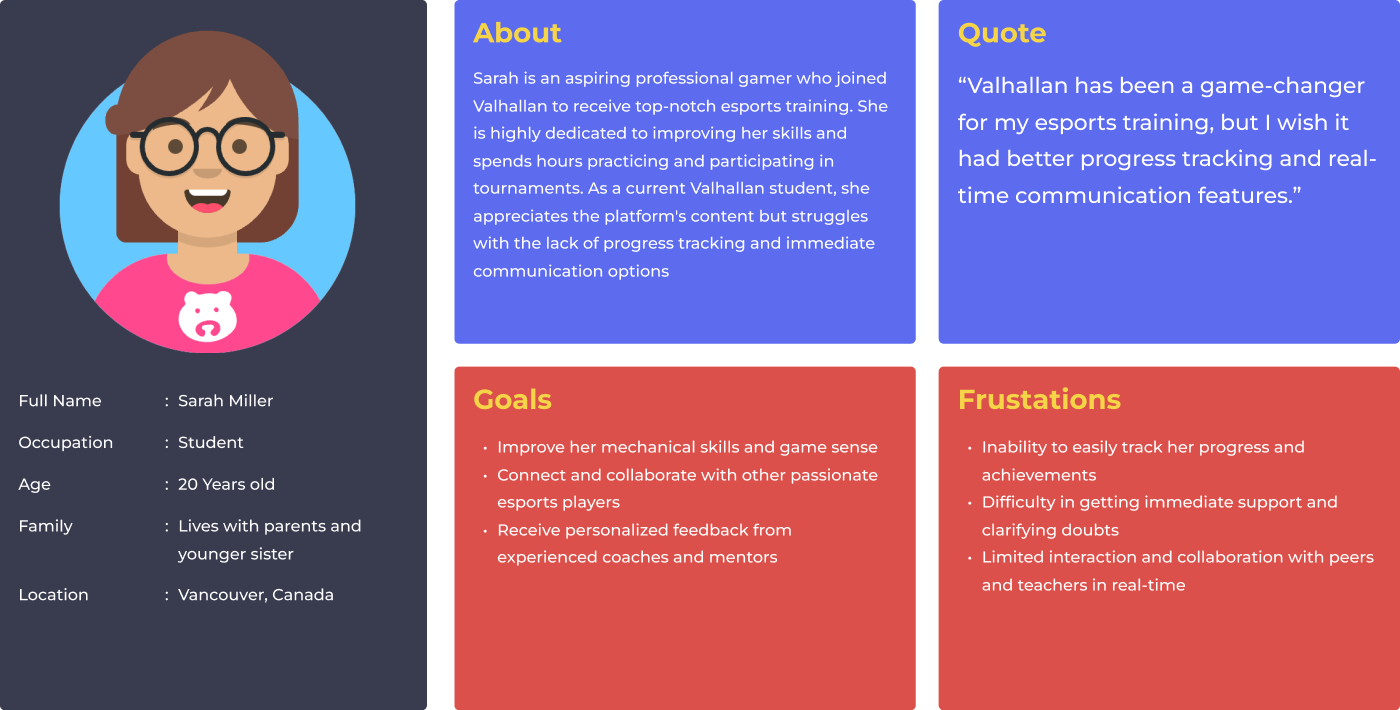 This comprehensive research approach enabled us to uncover key pain points and opportunities for improvement, informing the design process and shaping the proposed solutions for an enhanced Valhallan esports training platform.